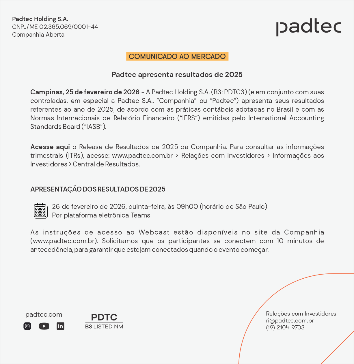 Comunicado ao Mercado – Padtec informa correção em quadro do ITR 1T23 |