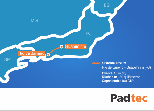 Para iluminar a nova rota da provedora que conecta o interior à capital carioca – o primeiro sistema óptico de 100 Gb/s do interior do Rio de Janeiro -, a Padtec forneceu transponders, modernos amplificadores ópticos duais e sistemas de proteção de rota. No total, são 180 quilômetros de redes ópticas, com terminações na capital e no município de Guapimirim, garantindo milhares de novas conexões de alta capacidade ao estado.